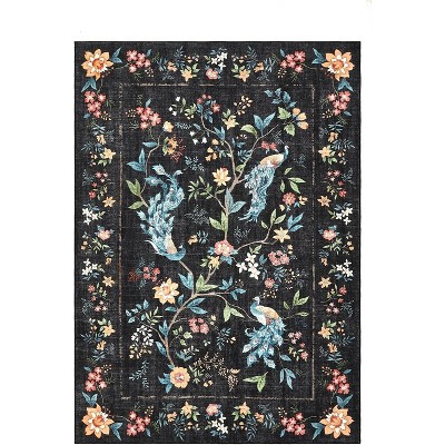 Floral Boho Runner Rug - Non-Slip Low-Pile Soft Carpet for Hallway, Kitchen Bathroom Nursery Office Dining Room Entryway