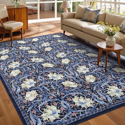 Modern Tree Print Area Rug - Stain Resistant Bordered Runner for Bathroom, Hallway Home Decor