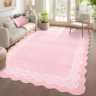 5x7 Rug Washable Modern Black Area Rug, Geometric Print Accent Rug Non-Slip Office, Carpet Thin Foldable Solid Indoor Floor Mat for Bedroom, Pink