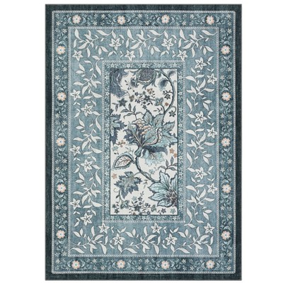 5x7 Vintage Area Rug – Washable, Foldable, Distressed Oriental Print, Non-Skid, Low Pile, Non-Shedding, Ideal for Bedroom Blue