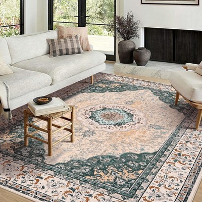 5x7 Vintage Boho Washable Area Rug - Soft, Non-Slip, Low-Pile, Farmhouse Style for Dining Room or Indoor Use, Taupe