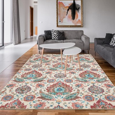 5x7 Washable Area Rug Geometric Trellis Rug Foldable Thin Living Room Bedroom Non Slip Stain Resistant Distressed Carpet