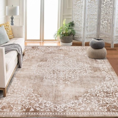 5x7 Washable Area Rugs for Living Room, Soft Vintage Damask Distressed Bedroom Rug, Foldable Low-Pile Indoor Floor Carpet, Grey