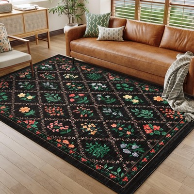 5x7 Washable Modern Abstract Area Rug, Non-Slip Foldable Low Pile Carpet for Living Room, Dining Room, Bedroom, Beige/Black