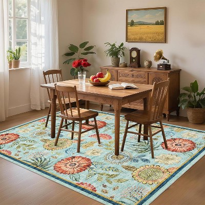 5x7 Washable Modern Floral Rug - Non-Slip Lightweight Thin Carpet, Non-Shedding Soft Low Pile Floor Cover for Bedroom Living Room Multicolor