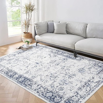 5x7 Washable Rug - Retro Non-Slip Carpet with TPR Backing, Soft Non-Shedding Low Pile Floor Cover for Living Room Bedroom Nursery Pink