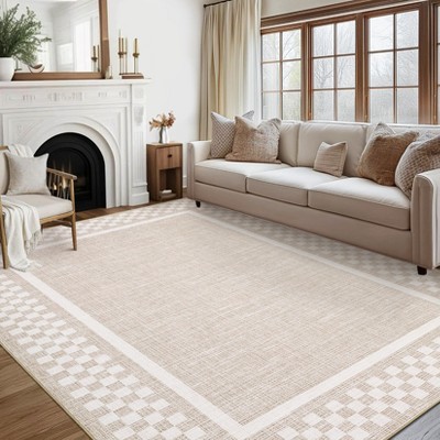 5x7FT Modern Washable Area Rug, Checkered Leopard Print Floor Cover with Non Slip Backing, Low Pile Stain Resistant Indoor Carpet, Beige