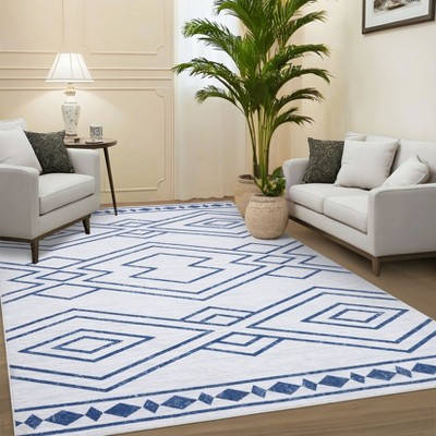 5x7FT Modern Washable Area Rug for Living Room, Strip Pattern Throw Carpet with Non Slip Backing, Low Pile Stain Resistant Floor Cover Blue