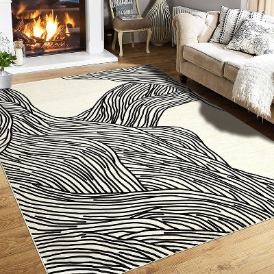 5x7FT Washable Vintage Rug – Floral Distressed Low Pile Non-Slip Carpet for Living Room & Bedroom-E Style
