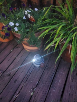 [This review was collected as part of a promotion.] I love this outdoor decor! It is so cute and the perfect size to fit on our front stairs. I love that it is solar powered so no messy chords. The little light lights the pathway very well.