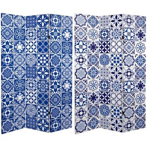 Oriental Furniture 6" Double Sided Tile Canvas Room Divider Blue: Indoor Privacy Screen, No Assembly Required