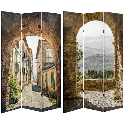 Presenting two powerful paintings from France''s famous "anti-impressionist" impressionist painter - Edgar Degas. The subjects of both paintings, as with many of Degas'' most acclaimed works, are ballet dancers. The front image is Blue Dancers, circa 1890, featuring dancers in deep sapphire blue tutus in front of a lovely mottled background. On the back is The Dance in the Foyer at the Opera on the Rue Le Peletier, circa 1872, featuring ballerinas in white studying their craft. Both sides are fine quality reproductions of two of Degas'' most engaging, compelling works of art. This multi-purpose room divider provides attractive interior design elements for your living room, bedroom, dining room, home office or business. This three panel screen has different images on each side, as shown.