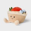 A: The plush toy is designed in the shape of a tart with a strawberry accent.