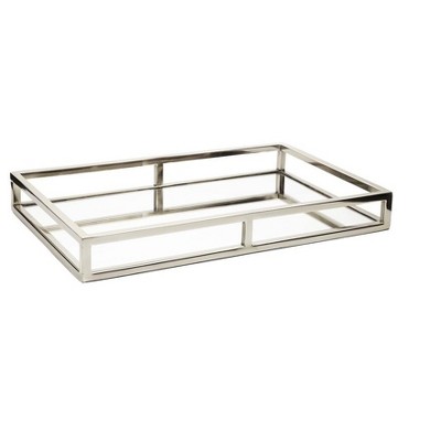 A storage piece that is spacious for your trinkets or decorative goods on your mantle, coffee table or kitchen counter. A versatile piece for storage or as a decorative display on any surface space. Get organizing and decorating a fancy vibe with this metallic silver decorative tray placed on your contemporary-themed counters or console tables. Designed with felt or rubber stoppers at the base that prevent scratching furniture and table tops, as well as sliding around. This item ships in 1 carton. Please note that this item is for decorative purposes only and is not food safe. Aluminum tray makes a great gift for any occasion. Suitable for indoor use only. This item ships fully assembled in one piece. Made in India. This is a single silver colored ottoman tray. Contemporary style.