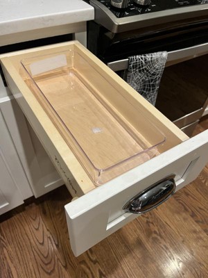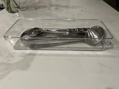 Give your kitchen tools the perfect storage space with the 6-Inch x 15-Inch Drawer Flatware Organizer from Brightroom™. Made of see-through plastic, this flatware organizer is 2.6 inches high, 6 inches wide, and 15 inches deep. Place it conveniently in your drawer to store and access cooking utensils, such as spatulas, ladles and more.