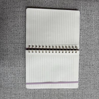 A: The notebook has a gold-tone twin spiral binding for easy page turning.