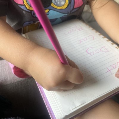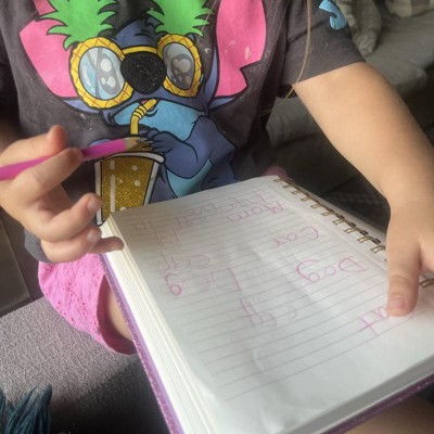 [This review was collected as part of a promotion.] This pink glitter hardcover notebook is absolutely adorable. My daughter claimed it as soon as she saw it. We use it to practice her writing. I like that it has the elastic strap to hold the book closed when not in use. It’s helpful that the spiral bound books allows for the cover to be folded completely back and provides a stable writing surface. Overall a great value for the price. I received an incentive to write this review.