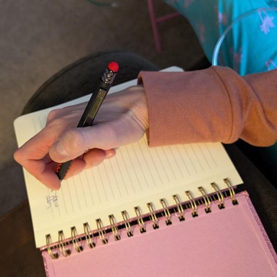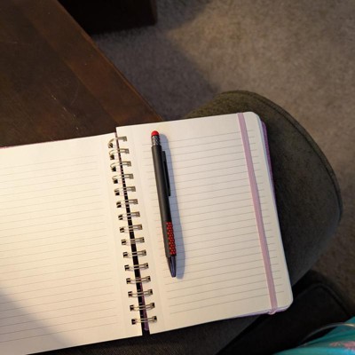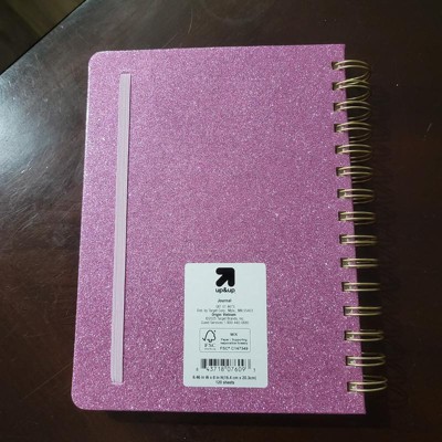 Add some sparkle to your writing experience with this Glitter Spiral Notebook from up&up™. This hardcover notebook features 240 double-sided lined pages, making it perfect for taking notes, work planning, organizing thoughts and more. It features a pink hardcover decorated with glitter and featuring a gold-tone side spiral binding. A light pink elastic band fastening completes the design and helps keep the notebook tightly closed.