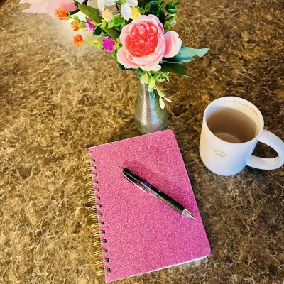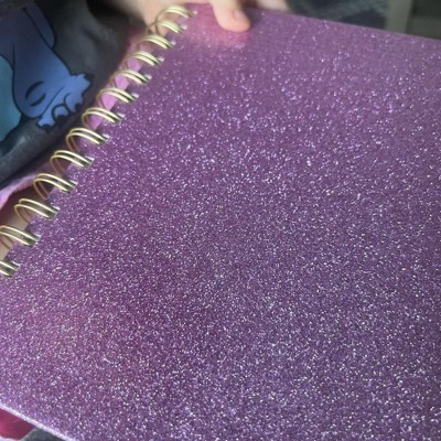 - Pink glitter hardcover with gold-tone twin spiral binding
