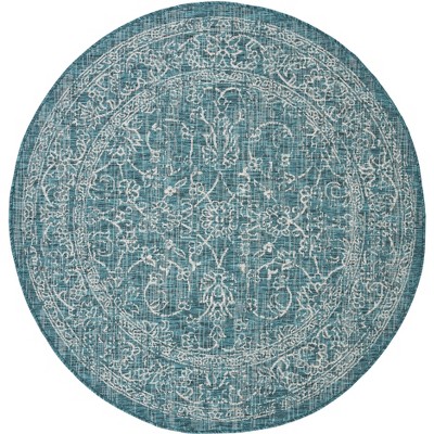 Lend a touch of transitional style to your deck with this indoor/outdoor patio rug. The dazzling, stain-resistant rug is machine-woven from polypropylene, and features navy and gray colors. The large, floral trellis pattern will bring beautiful appeal to your backyard as well as your sunroom. To maintain the look of this indoor/outdoor rug a rug pad made specifically for outdoor use is recommended. Regularly vacuum (without a beater bar) or sweep this rug to remove any dust, dirt or debris that can accumulate. Blot spills/stains with a clean cloth, then spot clean with a mixture of warm water and mild dish soap. For a deep clean, simply hose the rug down and fully air dry.