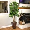 More. more. more, more . . . now! You can have a 6-foot-tall faux Fig Tree just the way you want it and begin enjoying it right now. This Fig Tree comes completely assembled and ready to become a special feature in your home or office. First comes the artfully crafted lush green variegated leaves. We have added attractive ground cover and a delightful copper toned metal planter. The combo adds up to easy to place enjoyment for years in your home or office.