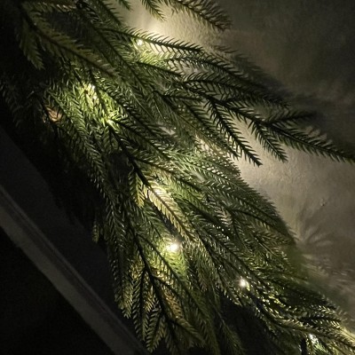 I absolutely love this. I had previously purchased a very similar garland elsewhere and they only had one piece. We wanted to have something going up our steps and was ecstatic when I saw Target had this. I only wish it had lights, but I was okay with it not at the same time because I love the micro lights on my original garland and was able to add those to this. I did take the bows off and will be repurposing them to had tiny wreaths on our cupboard doors