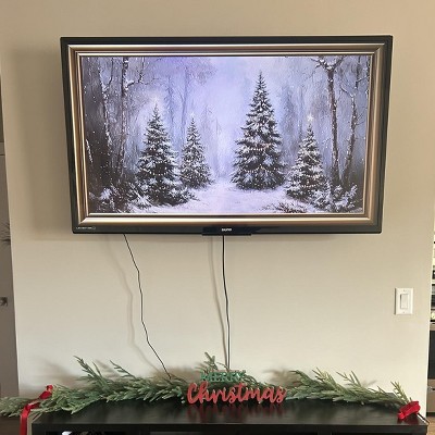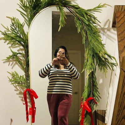 It took a few days to flatten out so I could lay it on top of my TV stand, but it looks great now that it's laying correctly. The bows look nice as well. But note that this is not 6 feet long. My TV stand is two of the Threshold Warwick cabinets put together (just under 68 inches wide), and the garland barely spans the length of it, so it is about 5 inches shorter than it says it is. In my case it works out well because if it was longer it would awkwardly stick out and not drape, but my plan to get another one to put on my 72" long Besta cabinet in another room doesn't work because it's comically too short.