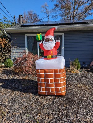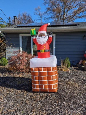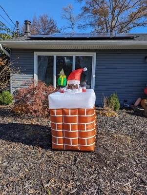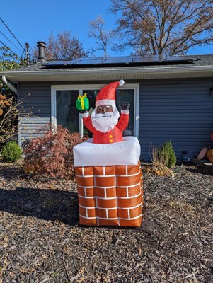Not sure if I got a defective, but this santa doesn't go all the way up. He gets stuck when he's being inflated and goes up but when he is completely inflated, he's stuck in the chimney and doesn't go up all the way. Wish it worked. I was hoping for him to work so I could have put him on my roof. South a let down.