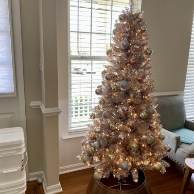Puleo 6.5ft Pre-Lit Rose Gold Tinsel Artificial Christmas Tree: 300 Clear LED Lights, Hinged Branches, Metal Base, Indoor Use - 2 of 4Puleo 6.5ft Pre-Lit Rose Gold Tinsel Artificial Christmas Tree: 300 Clear LED Lights, Hinged Branches, Metal Base, Indoor Use - 3 of 4Puleo 6.5ft Pre-Lit Rose Gold Tinsel Artificial Christmas Tree: 300 Clear LED Lights, Hinged Branches, Metal Base, Indoor Use - 4 of 4