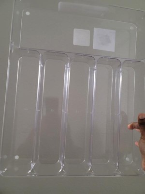 This compartment drawer fit perfectly into my cabinet drawer at home! I love the clear design & it made organizing all my utensils super easy. I really like the large compartment in the back - it held my knives and keeps them out of reach from my kids! Its spacious and held everything I needed it to.