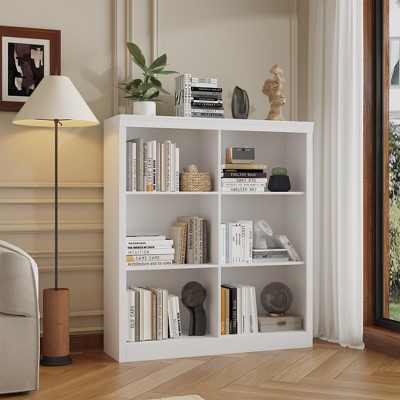 6 Cube Storage Organizer, 53 Inch Tall Bookcase with Anti-Tip Design, Sturdy Wooden Bookshelf for Living Room, Bedroom, Home Office,Cube Shelf-Ivory