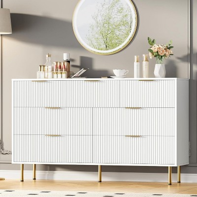 6 Drawer Dresser, Baby Changing Table Dresser, Convertible Nursery Dresser for Infant Essentials, Modern Changing Table Top with Pad Included, White