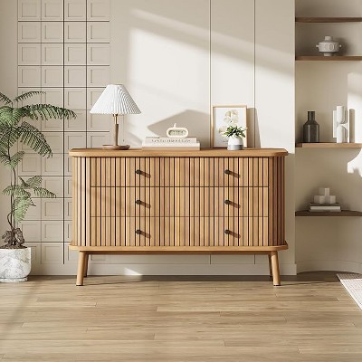- 🌟 STYLISH DESIGN: Fabricated through a special technology, the wood dresser with drawers features an imitation bamboo surface with a sleek curved profile design that is both unique and elegant. The addition of 6 drawers for storage space enhances the appealing detail of this modern dresser.