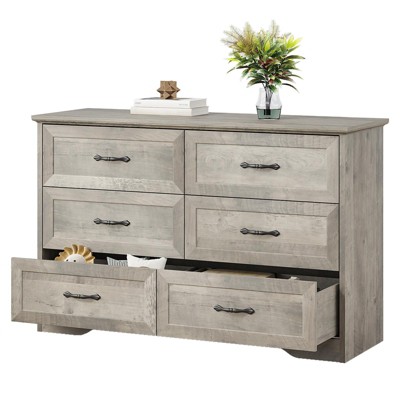 【Ample Storage, Stylish Organization】 With 6 large drawers, this dresser provides generous storage space to neatly arrange clothes, cosmetics, and personal items for your family. The top surface is ideal for displaying decorative items like green plants or mirrors, enhancing the room's overall beauty.