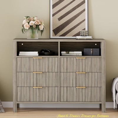 6-Drawer Rustic Wood Dresser ¨C 47.2" Wide Vintage Chest of Drawers with Bar Handles, Ample Storage & Chic Cabinet Legs, White