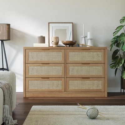 【Natural Rattan Weave with Luxe Gold Handles】 Hand-woven natural rattan finish and elegant gold handles blend rustic charm with modern sophistication, perfectly complementing bohemian, mid-century modern, or country-style home decor.
