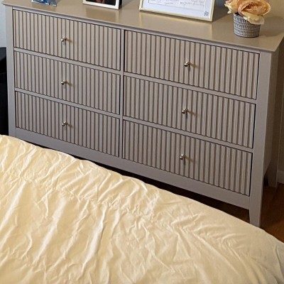 This 6-drawer dresser is exactly what I needed for my space! The fluted design adds a modern touch, and the wood finish is beautiful. The drawers are spacious and easy to open/close, providing plenty of storage. It was easy to assemble, and the overall quality is fantastic for the price. It looks great in my room and is a perfect blend of style and practicality. Highly recommend.