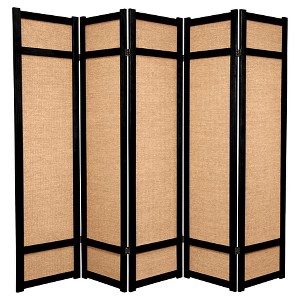 6 ft. Tall Jute Shoji Screen - Black (5 Panel): Oriental Furniture, Hardwood Frame, Metal Hardware, No Assembly Required
