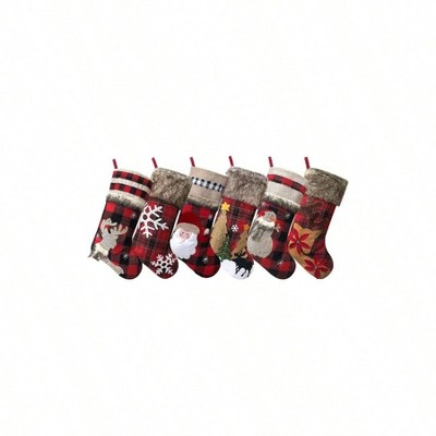 6 Pack 18 Inch Knit Stockings Large Rustic Yarn Xmas Stockings Snowflake Snowman Reindeer Holiday Decorations