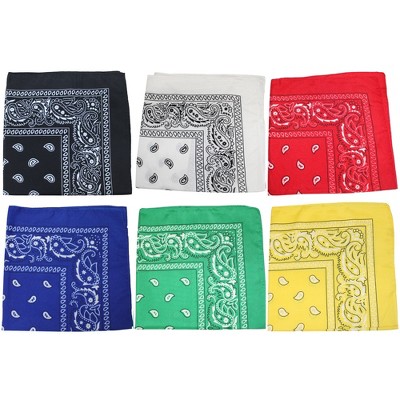 - Set includes 6 polyester bandanas in detailed paisley designs. Excellent for coordinating with multiple outfits.