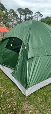 A: The tent uses shock-cord fiberglass poles for easy assembly and stability.