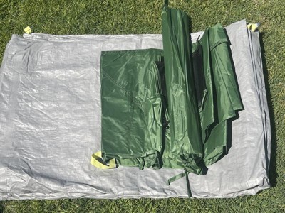 A: The tent's floor is made from heavy-duty polyethylene for durability and water resistance.