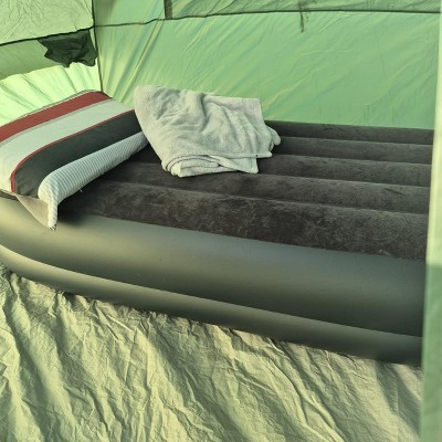A: Hello Chris- We appreciate your interest in this 6 Person Dome Family Tent Green.Yes — a king size air mattress will physically fit inside a 6 Person Dome Family Tent (Embark™) based on the specs. It’ll take up much of the floor space, leaving less room for gear or walking.- Auria