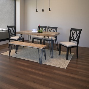 - VERSATILE 6-PIECE SET: Includes 1 sleek dining table, 4 cross-back chairs, and 1 matching bench—seats up to 6 people. Perfect for family dinners, friend gatherings, or casual brunches, the bench adds flexible seating for kids, extra guests, or even as a standalone accent piece.