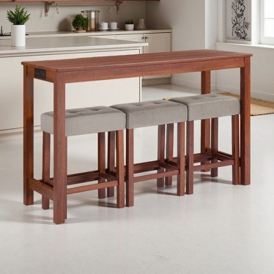 - DURABLE QUALITY MATERIALS: Sturdy solid wood frame ensures long-lasting durability. Chairs and benches have soft foam-filled seat cushions wrapped in linen for a cozy dining experience. Table (acacia legs) holds up to 350lbs; chairs and bench (rubberwood frames) each hold up to 250lbs.