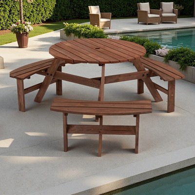 6-Piece Outdoor Patio Dining Set with Umbrella, 4 Folding Dining Chairs, and Round Glass Table