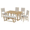 Product Name: 6-Piece Retro Dining Set, 1 Rectangular Table with Designed Trestle Base and 4 Upholstered Chairs and 1 Bench for Dining Room and Kitchen