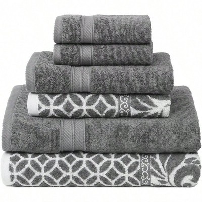 6 Piece Towel Set, 2 Bath Towel- 27"x54", 2 Hand Towel- 16"x28", 2 Washcloth- 13"x13" gray standard