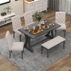 6 Pieces Farmhouse Dining Table Set, Wood Rectangular Table with 4 Upholstered Chairs and Bench - 2 of 46 Pieces Farmhouse Dining Table Set, Wood Rectangular Table with 4 Upholstered Chairs and Bench - 3 of 46 Pieces Farmhouse Dining Table Set, Wood Rectangular Table with 4 Upholstered Chairs and Bench - 4 of 4