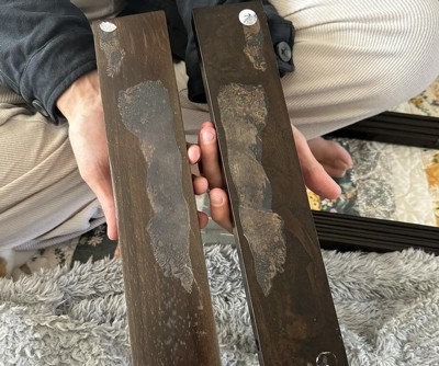 Two pieces of the cross legs came damaged (stuck together). Unable to have a replacement sent with returning all the heavy boxes.